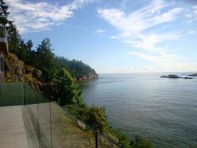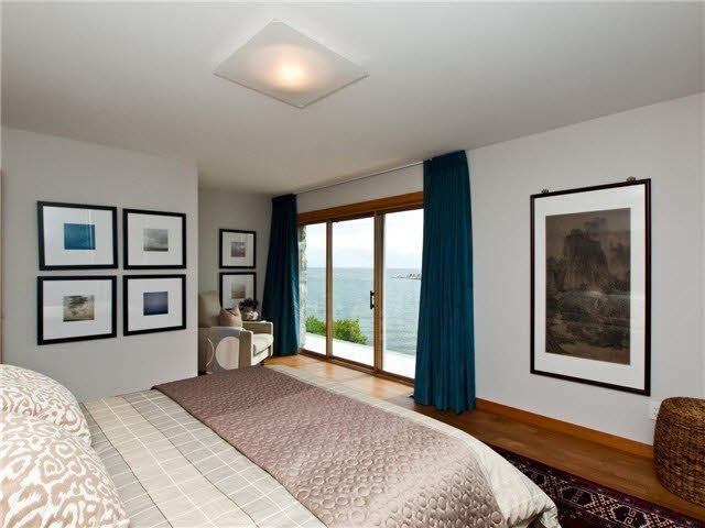 海景露台:现代玻璃栏杆露台俯瞰海岸与森林悬崖,远处岩岛点缀海面,视野开阔,适合晨间咖啡或黄昏小酌。